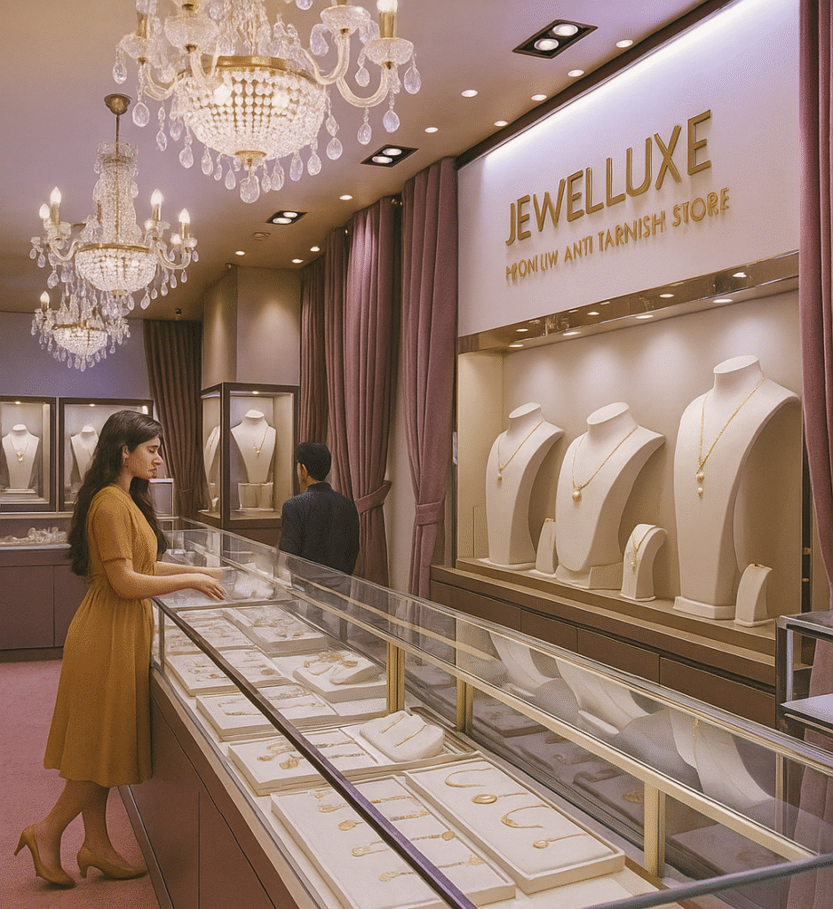 At Jewelluxe Store, we believe luxury should be within reach of every woman. From the city of Moradabad, we bring you premium anti-tarnish jewellery and elegant imitation ornaments that capture the brilliance of real gold — without the heavy price.