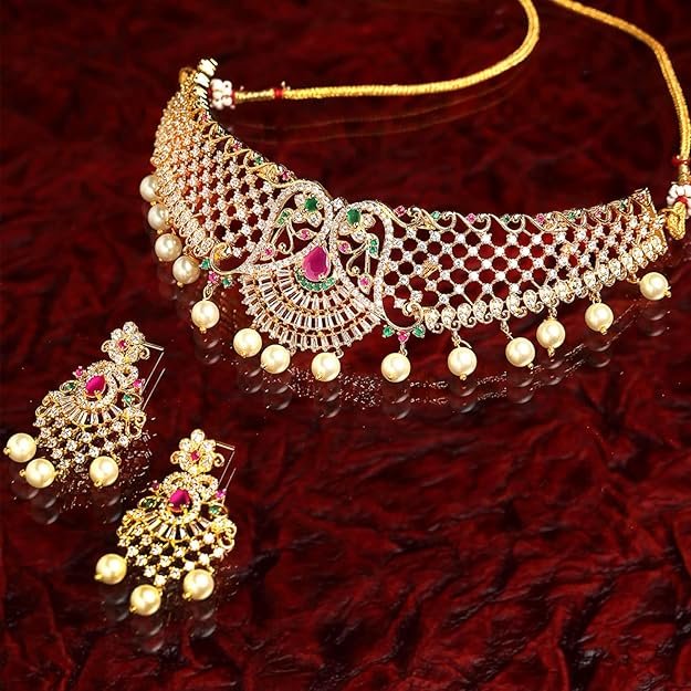 Lavish 24 Carat Gold Plated Floral Choker Necklace Set