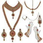 About this item Complete Bridal Jewelry Set: Includes a necklace, earrings, maang tikka, and adjustable vaddanam for a coordinated look.