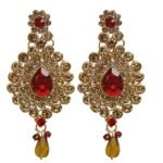 Lucky Jewellery Bridal Dulhan Designer 18k Gold Plated Gold Red Color Pearl Stone Set
