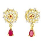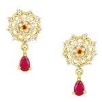 24 Kt Gold Plated American Diamond Nakshatra Ruby Drop Earrings