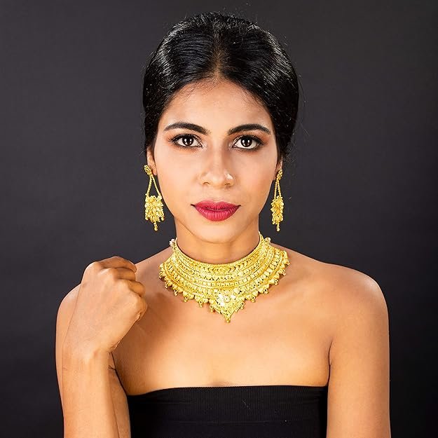 24ct Gold Plated Brass Bridal Wedding Choker Necklace Set with Earrings