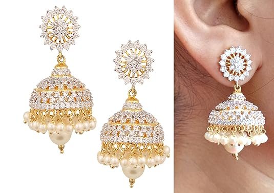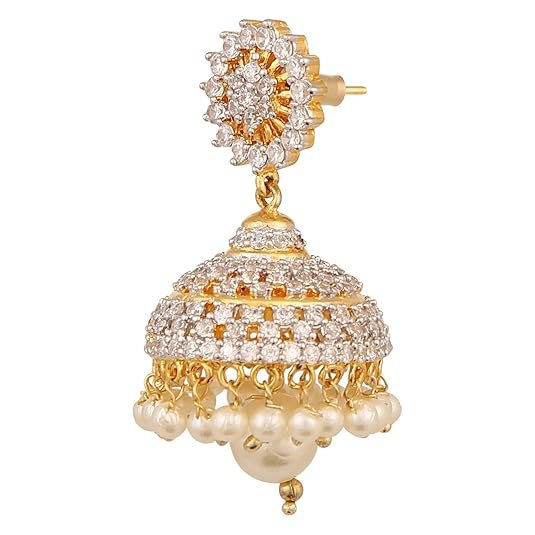 American Diamond CZ Traditional Ethnic Pearls Gold Plated Jhumka Earrings