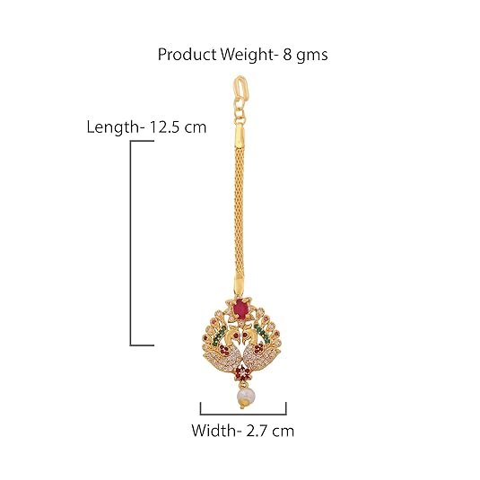 Add a regal charm to your look with this CZ Entwined Peacock Designer Maang Tikka, delicately adorned with sparkling Cubic Zirconia and elegant pearl drops. Featuring an artistic entwined peacock design, this statement piece is perfect for weddings, festivals, and traditional occasions.