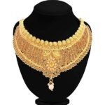 24ct Gold Plated Brass Bridal Wedding Choker Necklace Set with Earrings