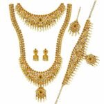 Gold-Plated Bridal Jewelry Set, Traditional Floral Design Necklace, Earrings, Maang Tikka