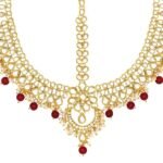 Elevate your traditional look with this Gold-Plated Kundan Pearl Maang Tikka Matha Patti, featuring intricate Kundan work and delicate pearl embellishments. Designed to beautifully frame your face, this elegant piece is perfect for brides and festive occasions.