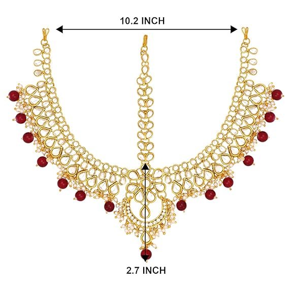 Gold Plated Kundan Pearl Maang Tikka Matha Patti Jewellery