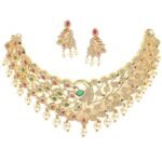 Dazzle in tradition with this Gold-Plated Jewellery Set, featuring white and red American Diamonds and a graceful drop pearl beaded design. Perfectly paired with matching earrings, this set adds a classic touch to your festive and ethnic outfits.