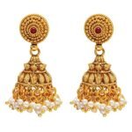 Traditional Handcrafted Antique Gold Jewellery Clustered Hanging Pearls Necklace Set With Jhumki Earrings