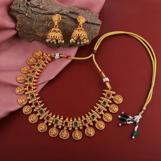 18k Gold Plated Traditional Temple Choker Necklace Wedding Party Stylish Jewellery Set